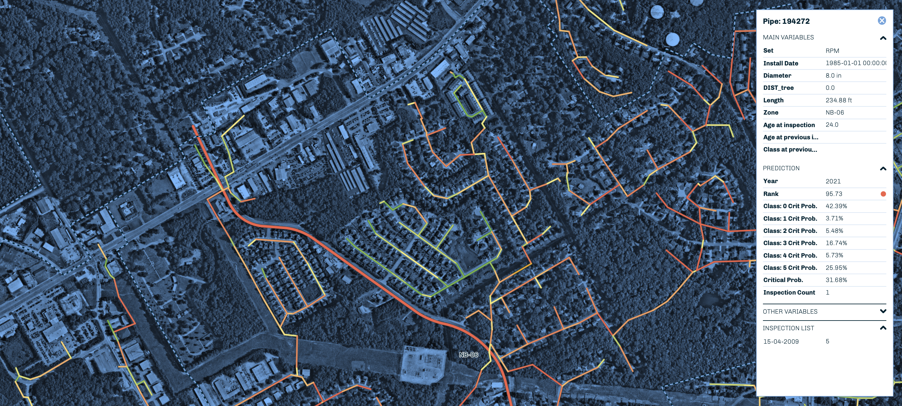 Using existing CCTV inspections together with GIS and contextual data to predict sewer condition across the enables pointing the next inspections to the most critical assets at any moment. This means large gains in ROI and speed of results.