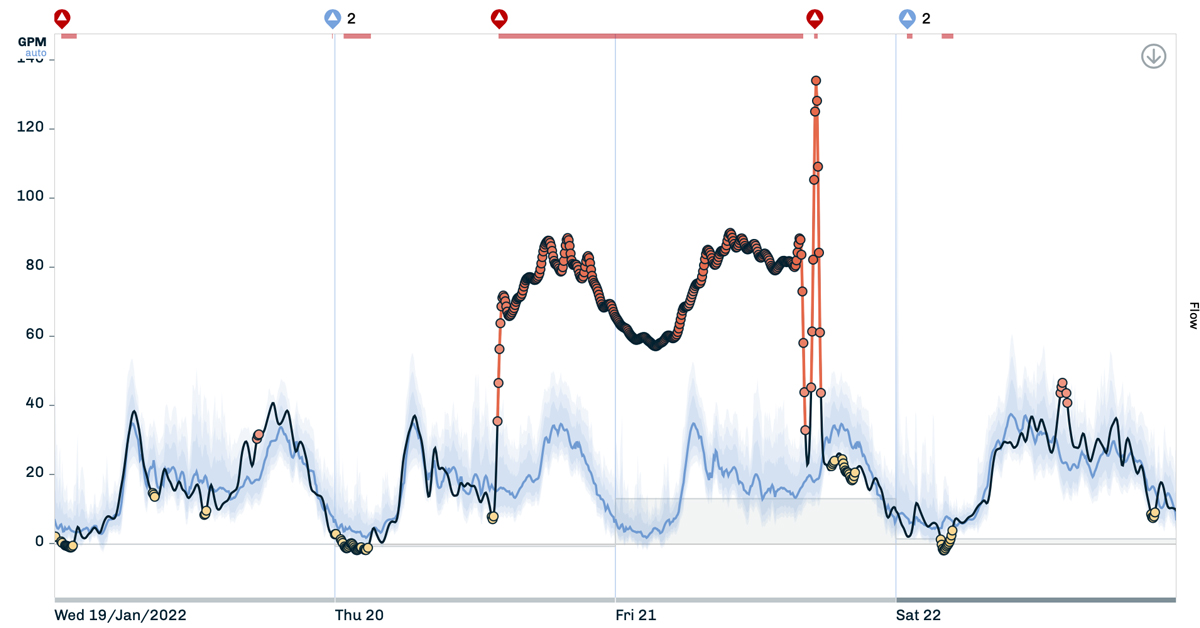 From the engineer on the ground: "Last Friday I was able to notify operations of a potential leak in the system. Thanks to this alert they were able to find and fix a leak. The data points in the direction of a 60gpm leak, so pretty darn good win for the software."