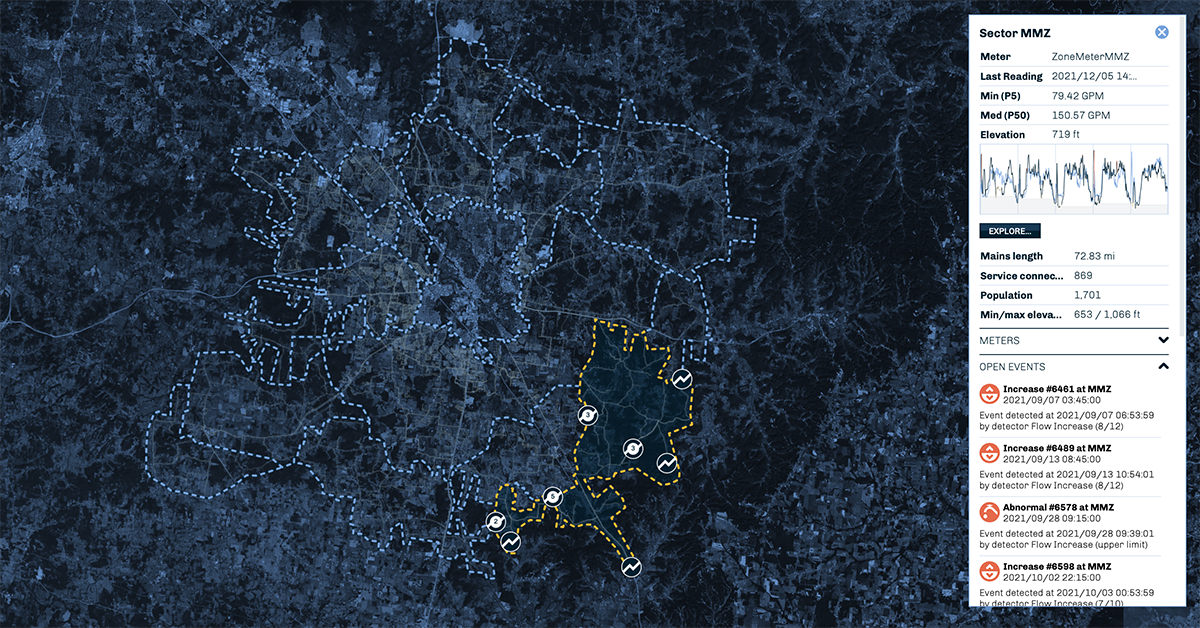 This public utility implements a DMA program as part of their water & energy losses management effort. A growing number of DMAs has been equipped to track down and address breaks and leaks, quantify consumption and manage NRW and the system in a more systematic and efficient way.