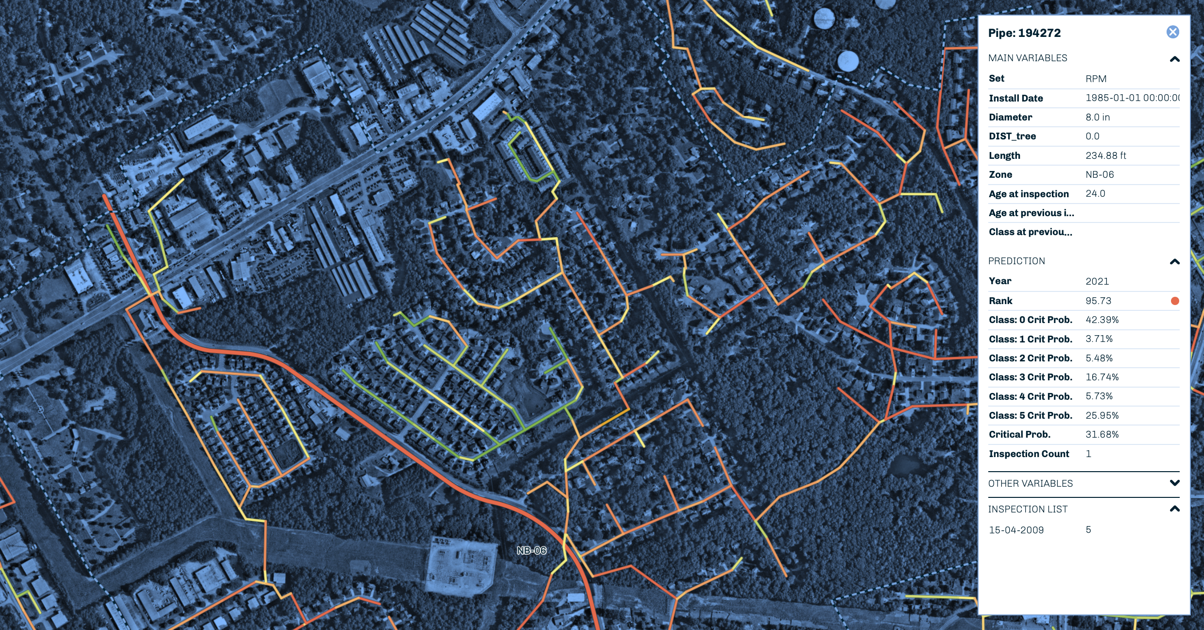 Inspecting the insides of sewer pipes and manholes regularly is the best way to address problems proactively and direct your hard-earned resources to best results. Yet it can be daunting to address a sewer system and make sure that the most critical assets are found swiftly. This is where predictive analytics are of unique value in finding trends in your data and predicting asset condition. Those predictions can then be put to best use by human insight to prioritize inspections plans that maximize the value of your resources: not only getting to more critical pipes faster, but ensuring that the new inspections add new knowledge and help increase the accuracy of those predictions exponentially.