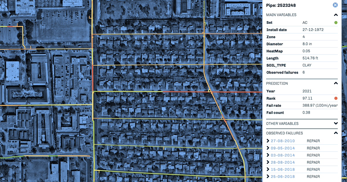 The utility sought our software for the purpose of proactively prioritizing the pipes most likely to fail, with benefits for both O&M and CIP planning.